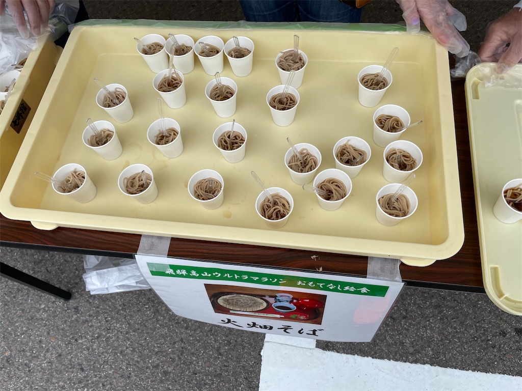 道の駅ひだ朝日村エイドでは、よもぎうどんと火畑そばを食べて早々にリスタート。