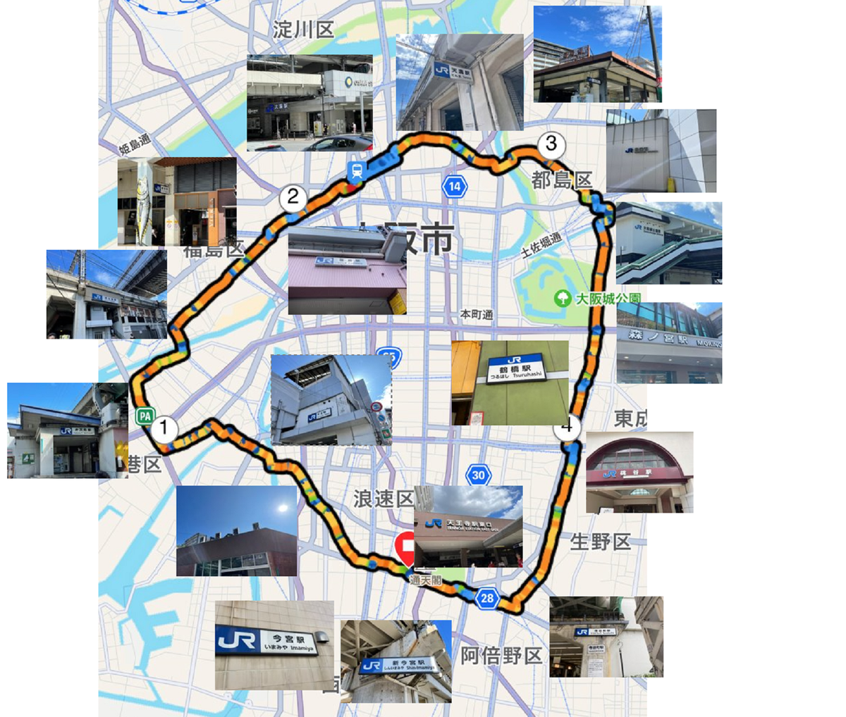 このマラニック、如何にして最短距離で大阪環状線を一周出来るかが最大の眼目である。故にマラニックの本来の目的である名所旧跡、観光スポット等は一切の立ち寄りを禁じられる。