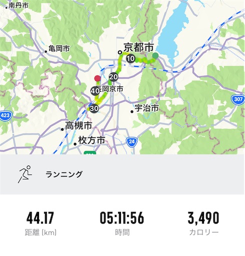 とりあえず動き続ける事だけ意識して、スピードは無視ww。だいたい6分後半から7分のペースを刻む。