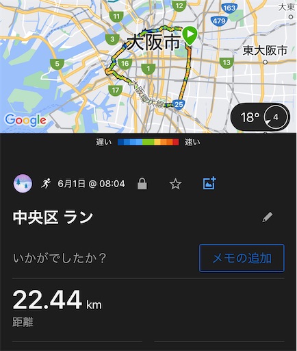 駅名看板補足方法を変更(5mまでは近づいてない)して、新たなルートを作成。机上の空論では22.85km。大阪城公園からスタートして、一度も走ったことのない反時計周りで検証。GPSのズレを考慮して23km前後だろうと予測していたが‥