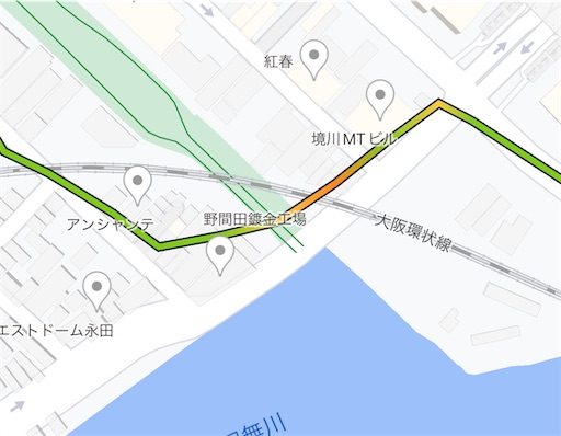 ③キロ5を切って走ってたので、右左折でショートカットされていた。